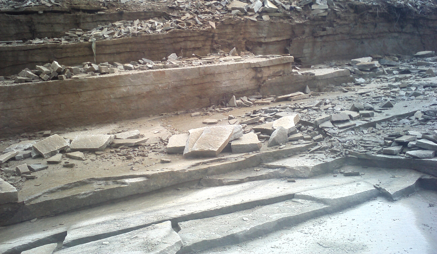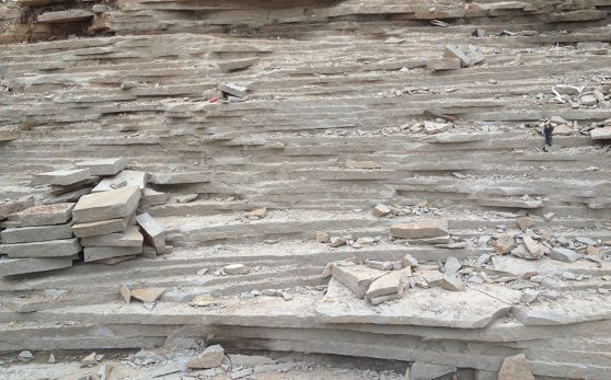 При ручной добыче камень «снимают» слой за слоем. Так плиты получаются относительно ровными, с минимальными перепадами по высоте, примерно одинакового размера.